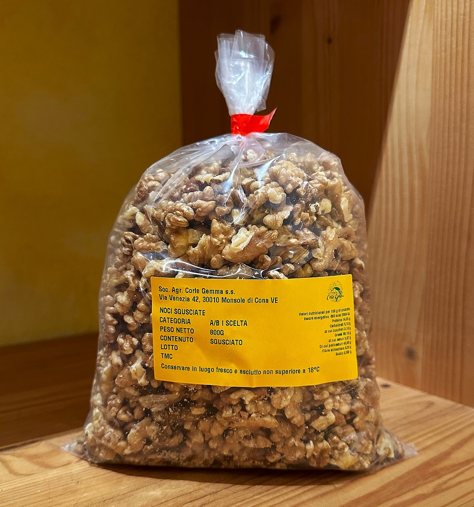 Tutto il processo produttivo (raccolta, smallatura, lavaggio, essicazione, confezionamento) avviene presso l’Azienda Agricola Corte Gemma che pratica le più moderne tecniche di lotta integrata e il monitoraggio dei voli, permettendo di limitare i trattamenti chimici e di produrre una noce a residuo zero.