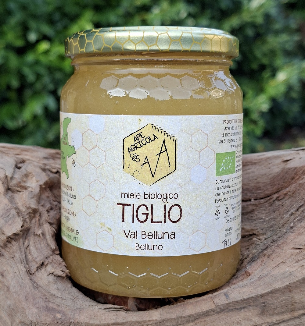 Miele di Tiglio biologico raccolto in val Belluna alle pendici del Nevegal e prodotto senza usare antibiotici, antiparassitari e altre sostanze che possono lasciare residui nocivi nel miele.