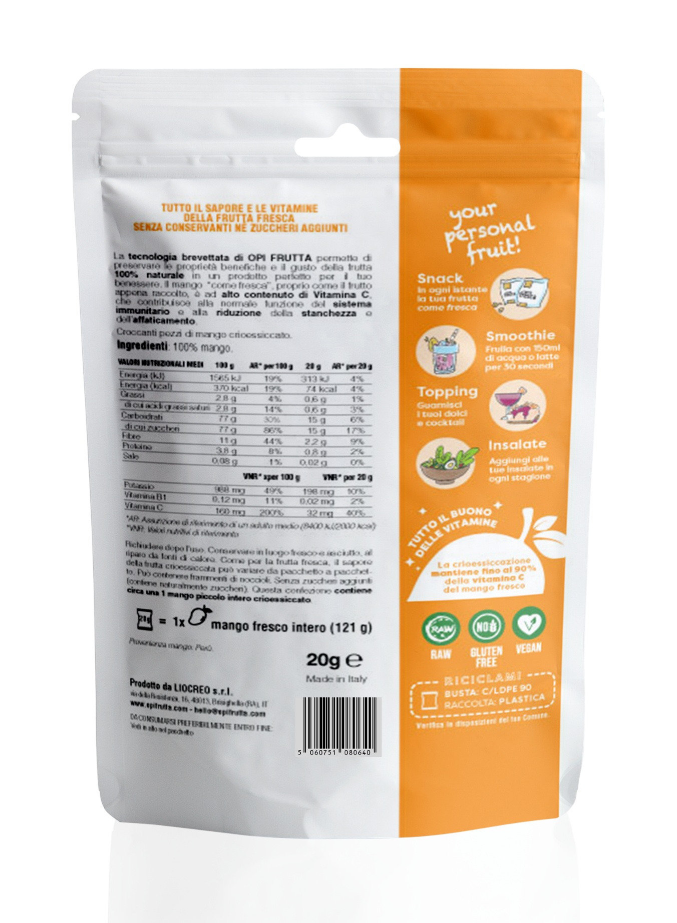 La crio–essiccazione dona ai prodotti di OPI Frutta una lunga vita e riduce di molto il rischio di dover buttare frutta ammuffita o marcia nella spazzatura.