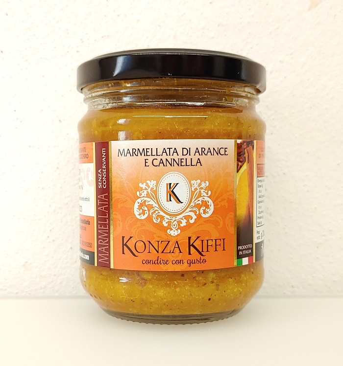 La marmellata di arance e cannella è prodotta dall’azienda agricola Konza Kiffi senza l’uso di conservanti, addensanti o coloranti.